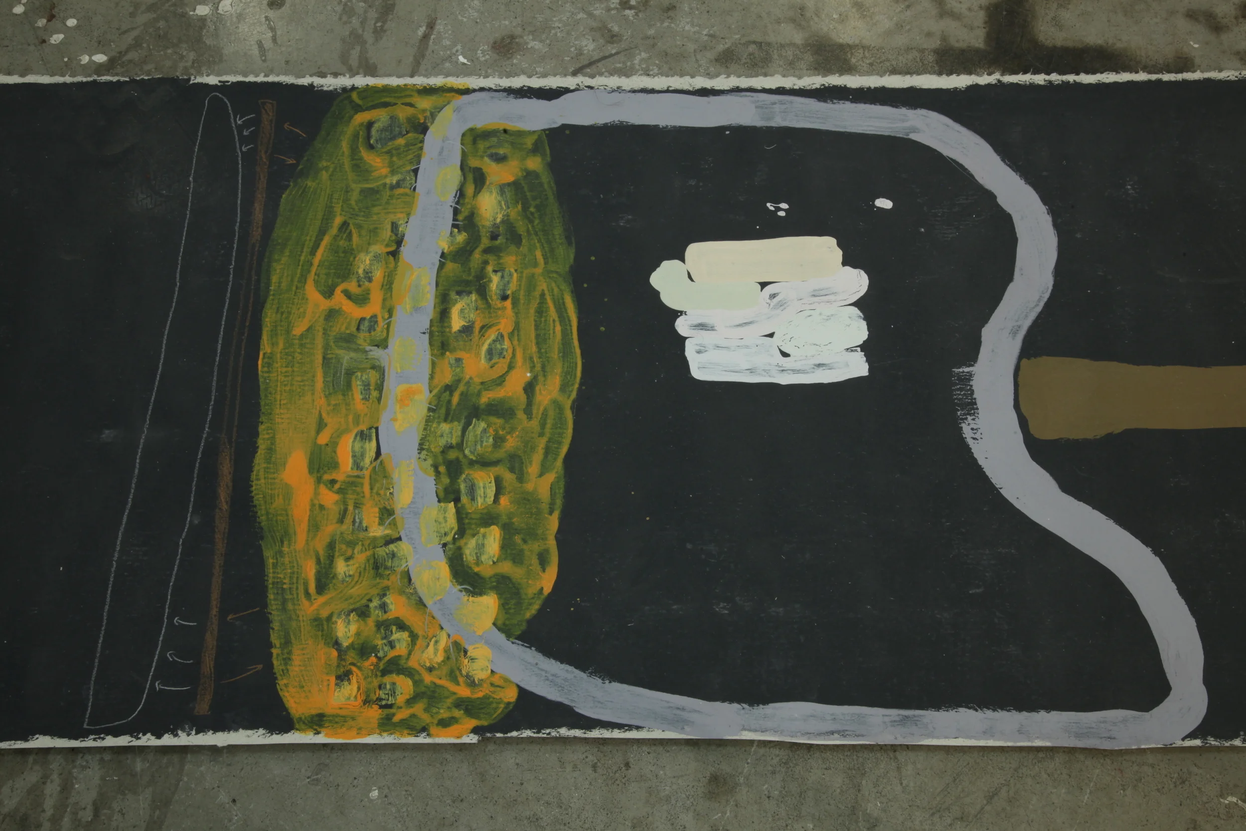 Lessons From Trees was a 2013 solo exhibition at Virginia Commonwealth University. The show consisted of three elements: four long scroll drawings on the floor; 6 tiny portraits of trees; and a two channel sound installation filling the space and coming from four large speakers on the ground. Lessons From Trees was about what happens on the inside of bodies. It was about the way that I am the same as the tree, the tree is the same as the sound, and the sound is the same as the marks made. It was about the dissolving of barriers. (Scroll to the bottom of the page to play sound recording).