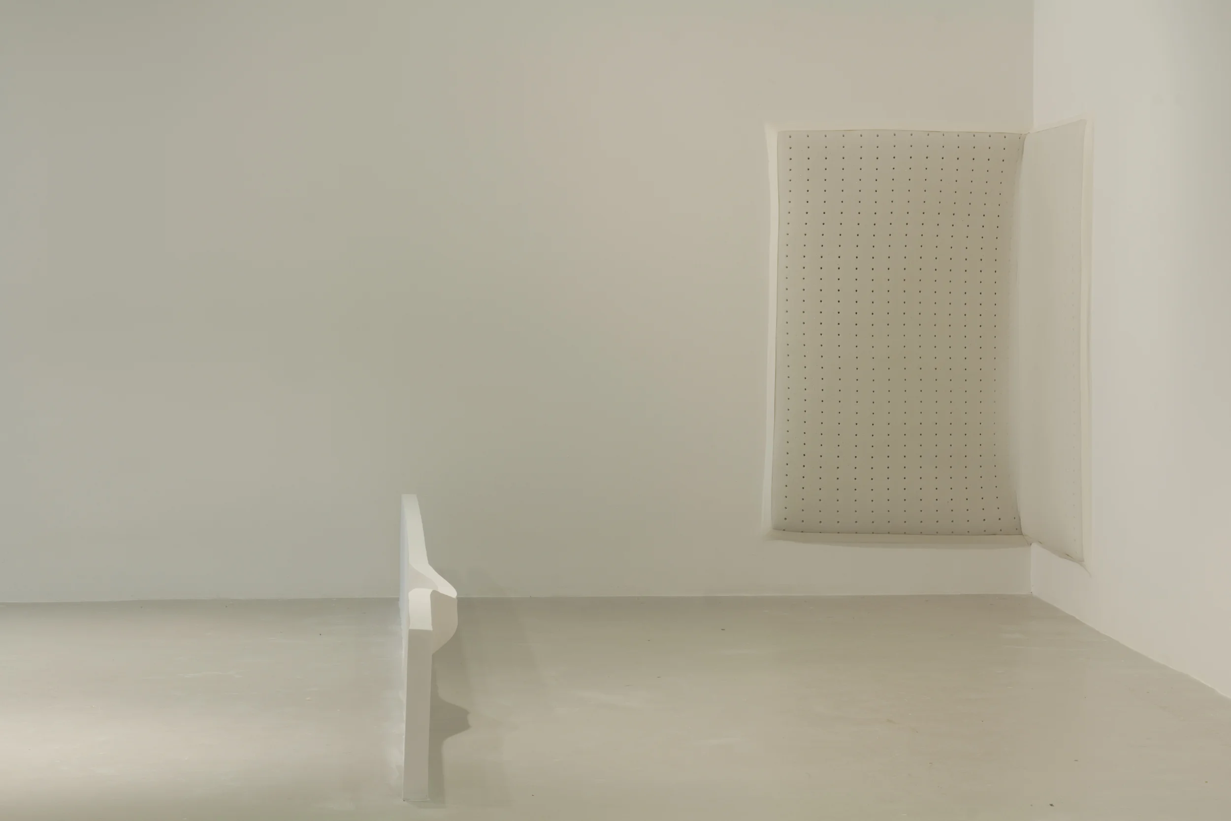 Lean Into Me was my MFA Thesis show at Yale in 2012. The show consisted of four elements: two huge, room-sized boxes filling the center of the gallery; a corner piece made of memory foam; a long, low wall sculpture; and a gallery wall with an embedded foam piece of the impression of a body. This show was about interpenetration and about bodies coming in and out of being separate.